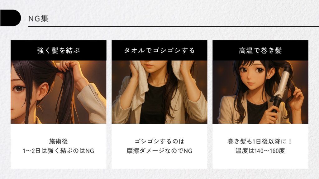 せっかく高いお金を払って縮毛矯正していただいたので、1日でも長く“綺麗なまま”を体感してほしい。