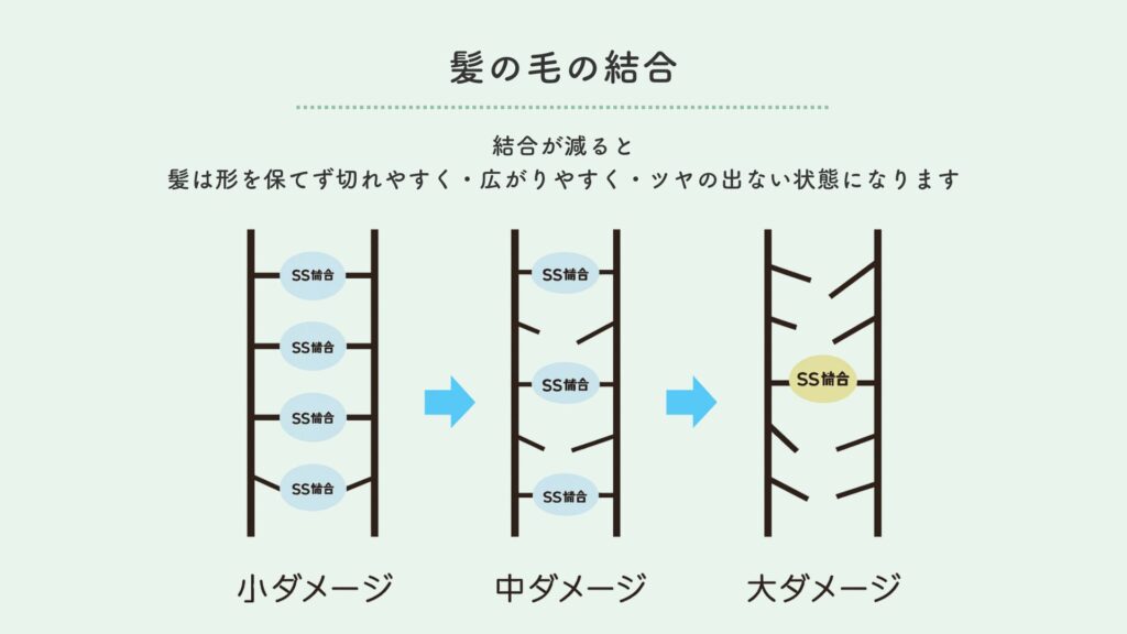 一方で毛先は、摩擦などのダメージ要因がなければ、多少時間がかかっても大きく傷むことはありません。