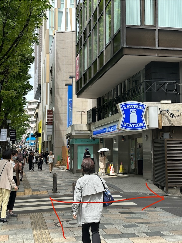 30秒ほど歩くとローソンがあるので、その奥の道を左に。