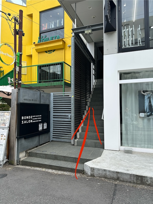 その手前に見える白い看板のBONDZ SALONは罠です。笑 別店舗になりますのでご注意ください。